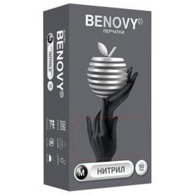 Перчатки нитриловые смотровые 50 пар (100 штук), размер 7-8, M (средний), черные, BENOVY Nitrile Chlorinated, М