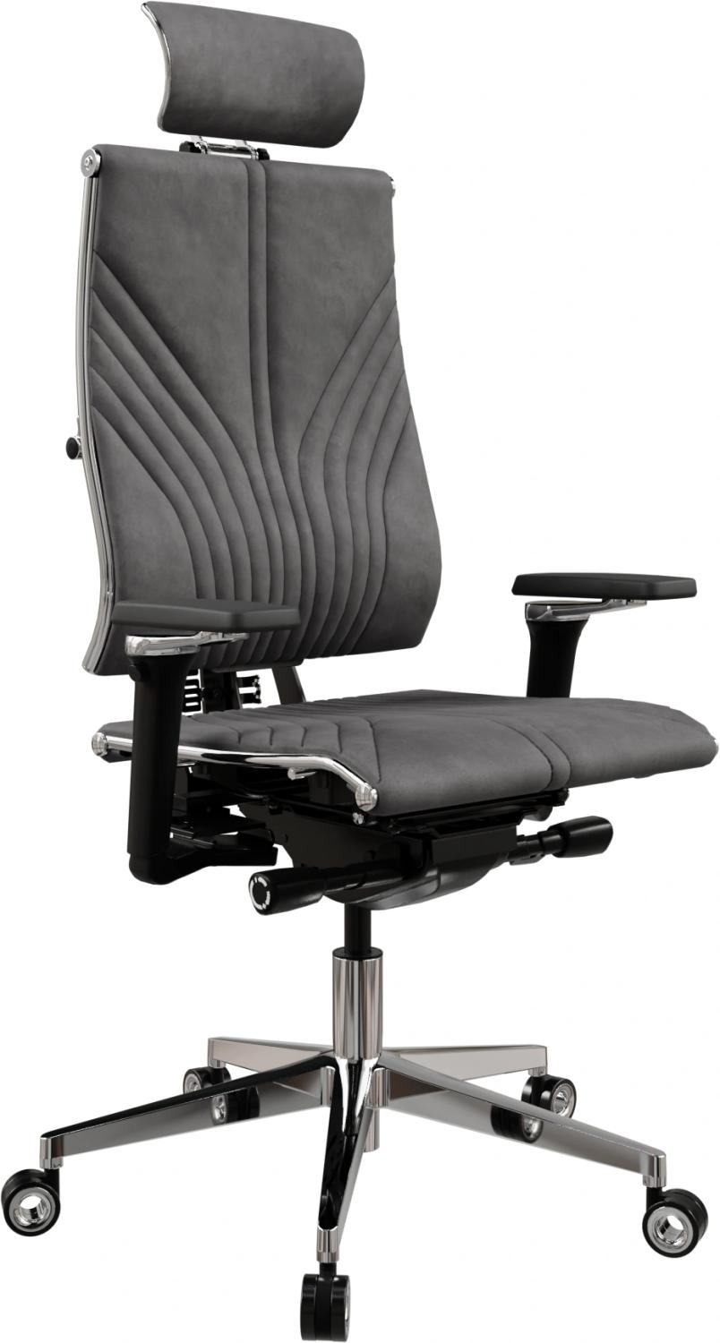 Кресло руководителя эргономичное Метта Yoga 4DF B2-12D - GoyaLE темно-серый сиденье темно-серый велюр с подголов. крестов.5-луч. металл хром