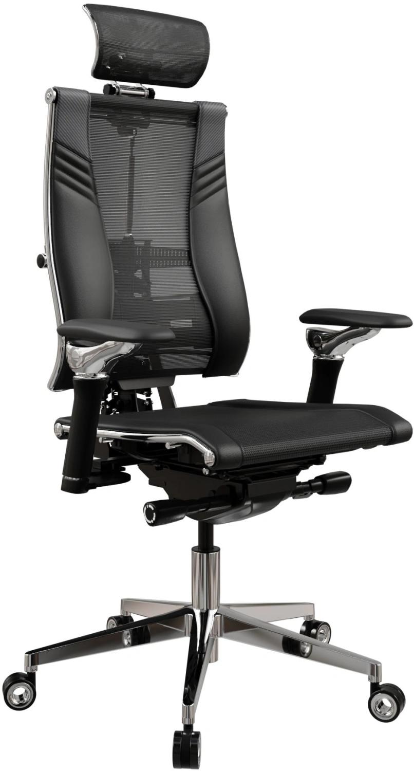 Кресло руководителя эргономичное Метта Yoga 4DT B2-15D - YM93+Infinity+carbon черный сетка / кожа с подголов. крестов. алюминий хром