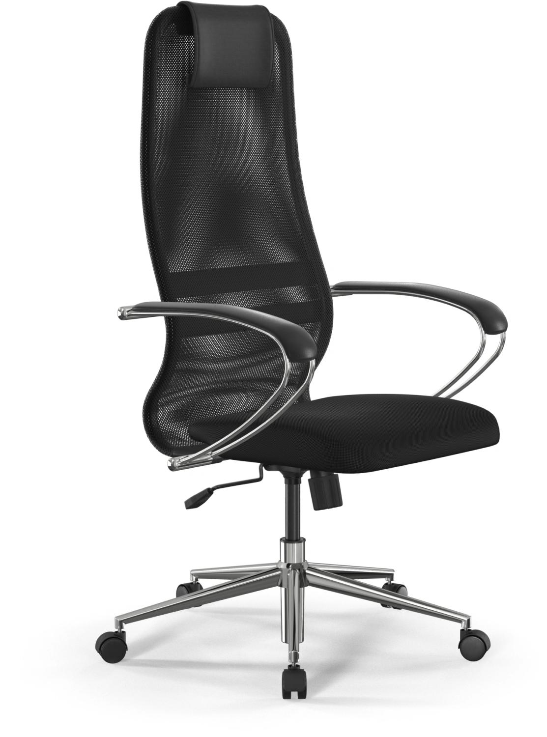 Кресло Метта SU-B-10 черный сиденье черный сетка с подголов. крестов. металл хром