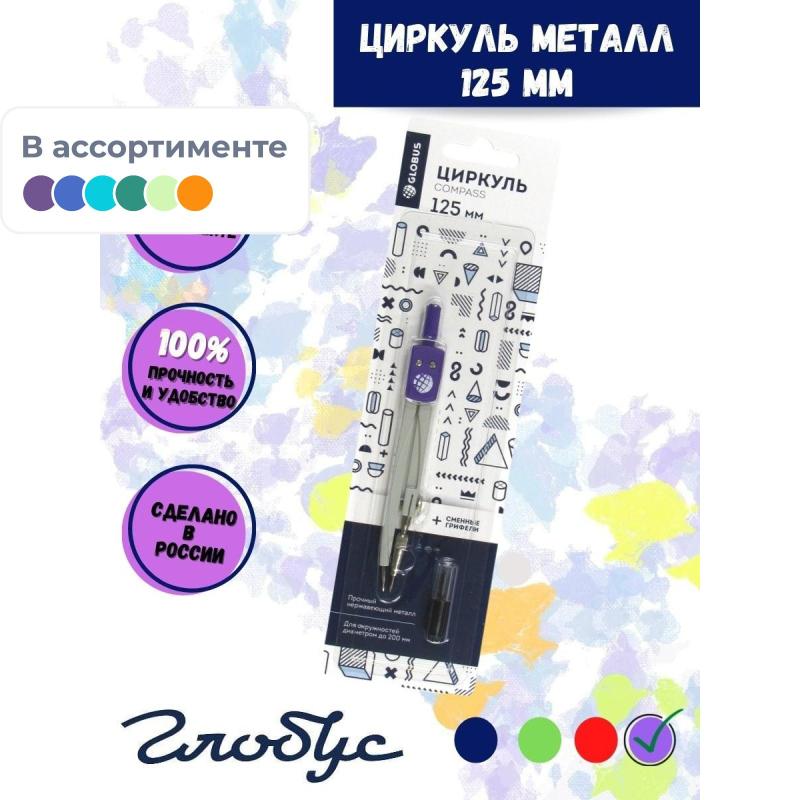 Готовальня Глобус ЦЧП-40Б School циркуль 125мм,мет,зап.грифель,в асс,блист