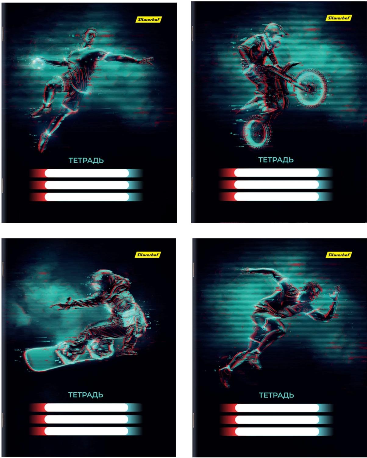 Набор тетрадей Silwerhof 18л. лин. A5 Спорт 4диз. мел.карт. вод.лак скрепка (упак.:4шт)