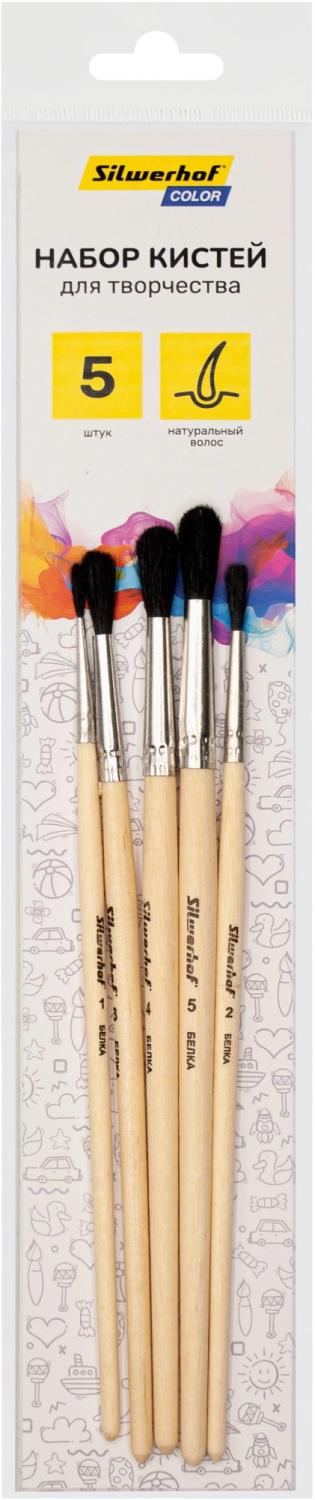 Набор кистей Silwerhof Color белка имит. (наб.5шт) круглая №1-5 дерев.ручка