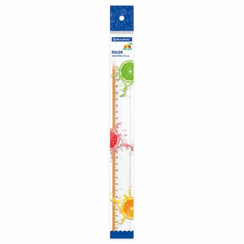 Линейка пластиковая 30 см BRAUBERG "FRESH ZONE", прозрачная, с оранжевой шкалой, 210759