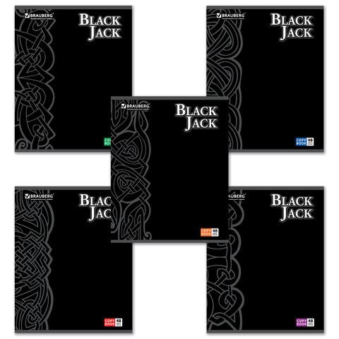 Тетрадь А5, 48 л., BRAUBERG скоба, клетка, выборочный лак, БЛЭК ДЖЭК, 401824