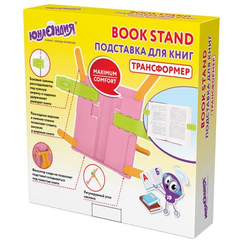 Подставка для книг ЮНЛАНДИЯ, с боковыми зажимами, регулируемый наклон, пластик, розовая, 237907