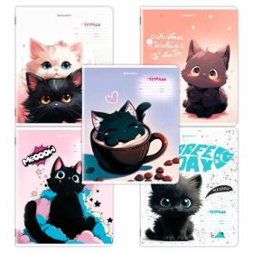 Тетради ДЭК 18 л. КОМПЛЕКТ 10 шт. BRAUBERG, клетка, обложка картон, "КОТИКИ", 107335