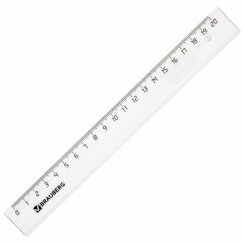 Линейка пластиковая 20 см, BRAUBERG, прозрачная, тонированная, 210606