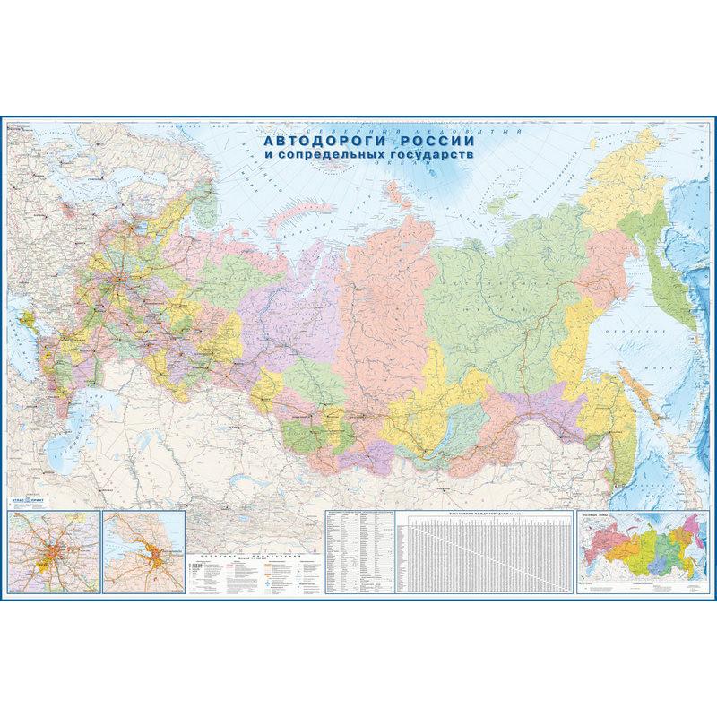 Карта настенная Автодороги РФ и сопред.госуд.полит-адм,1:3,7млн,2,33х1,58м