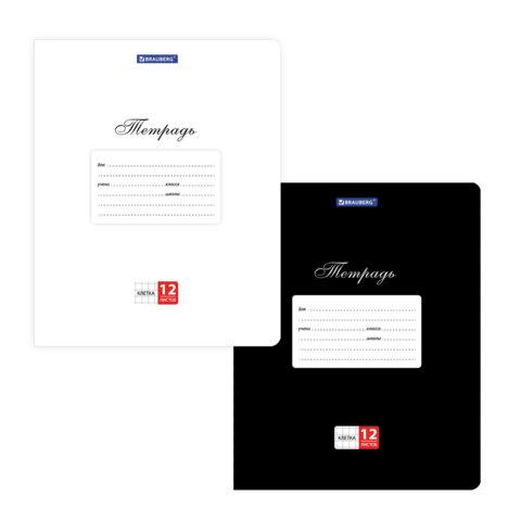 Тетради ДЭК 12 л. КОМПЛЕКТ 10 шт. BRAUBERG КЛАССИКА, клетка, обложка картон, ЧЕРНАЯ / БЕЛАЯ, 107059