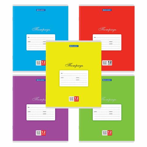 Тетради ДЭК 12 л. КОМПЛЕКТ 10 шт. BRAUBERG КЛАССИКА, косая линия, обложка картон, АССОРТИ, 107060