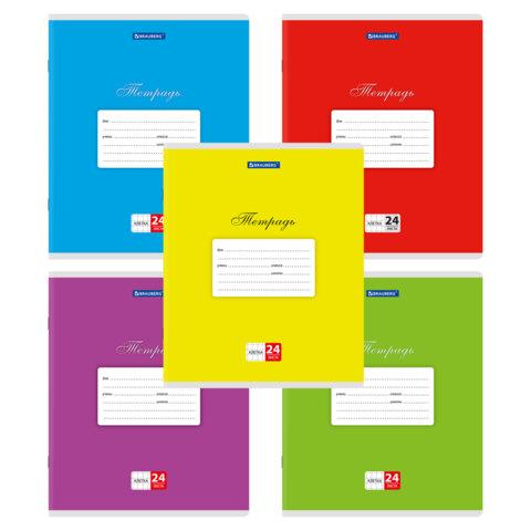 Тетради ДЭК 24 л,. КОМПЛЕКТ 20 шт., BRAUBERG КЛАССИКА, линия, обложка картон, АССОРТИ (5 видов), 106977