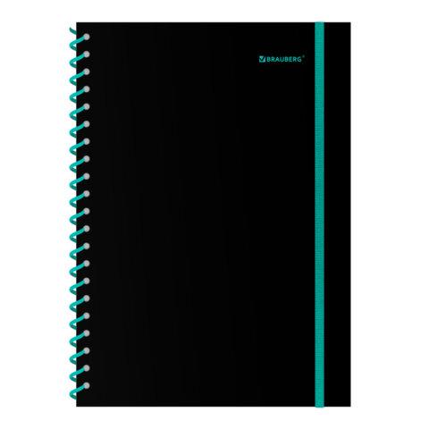 Тетрадь обложка пластик, А4 80 л., спираль пластик, резинка, клетка, BRAUBERG, черный / синий, 405381