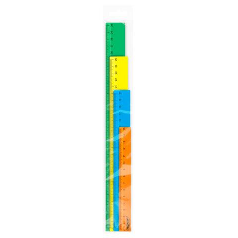 Линейки пластиковые 15, 20, 25, 30 см неоновые, ПИФАГОР, НАБОР 4 шт., непрозрачные, европодвес, 210906