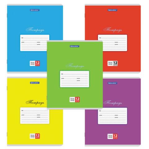 Тетради ДЭК 12 л. КОМПЛЕКТ 10 шт. BRAUBERG КЛАССИКА, линия, обложка картон, АССОРТИ, 107062