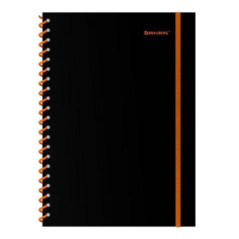 Тетрадь обложка пластик, А4 80 л., спираль пластик, резинка, клетка, BRAUBERG, черный / оранжевый, 405382