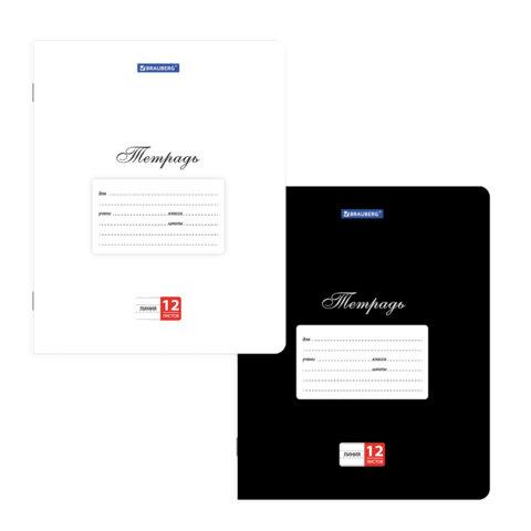 Тетради ДЭК 12 л. КОМПЛЕКТ 10 шт. BRAUBERG КЛАССИКА, линия, обложка картон, ЧЕРНАЯ / БЕЛАЯ, 107064