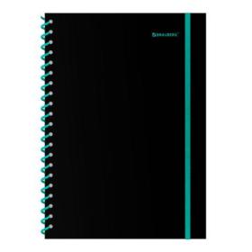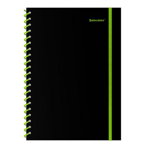 Тетрадь обложка пластик, А4 80 л., спираль пластик, резинка, клетка, BRAUBERG, черный / зеленый, 405383