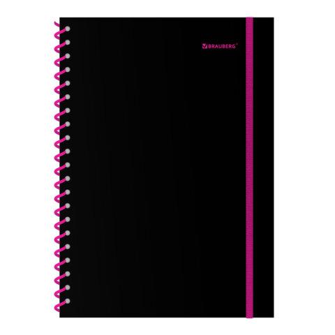 Тетрадь обложка пластик, А4 80 л., спираль пластик, резинка, клетка, BRAUBERG, черный / розовый, 405380