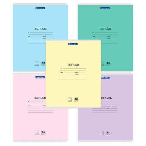 Тетради ДЭК 18 л., КОМПЛЕКТ 10 шт., BRAUBERG "КЛАССИКА NEW", клетка, обложка картон, АССОРТИ, 107076