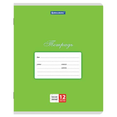 Тетради ДЭК 12 л. КОМПЛЕКТ 20 шт. BRAUBERG КЛАССИКА, косая линия, обложка картон, ЗЕЛЕНАЯ, 107073