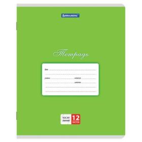 Тетради ДЭК 12 л. КОМПЛЕКТ 10 шт. BRAUBERG КЛАССИКА NEW, линия, обложка картон, ЗЕЛЕНАЯ, 107053