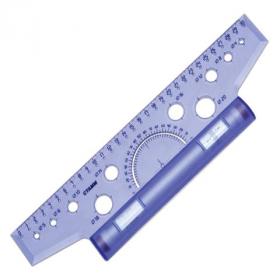 Линейка с роликом (рейсшина) 30 см, металлический ролик, с транспортиром, прозрачная, ЛР-30478