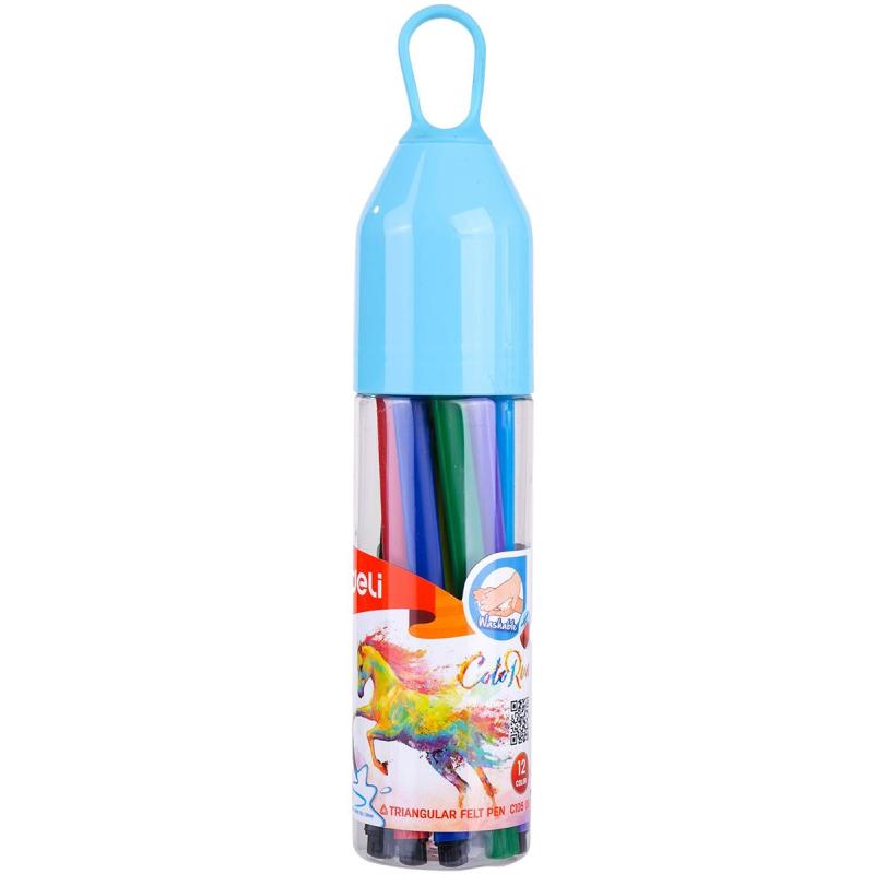 Фломастеры набор Deli ColoRun трехгр. вентилир.,смываемые12цв.пластик.туба