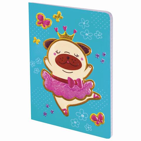 Блокнот МАЛЫЙ ФОРМАТ (103х148 мм) А6, 32 л., сшивка, тиснение, клетка, ЮНЛАНДИЯ, Мопс, 662704