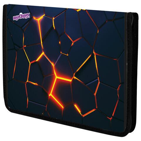 Папка для труда на молнии ЮНЛАНДИЯ А4, 1 отделение, откидная планка, органайзер, "Volcano split", 273394