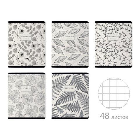 Тетрадь А5, 48 л., BRUNO VISCONTI, скоба, клетка, Soft-Touch, фольга, "BLACK&WHITE.FLORA" (5 видов), 7-48-1369