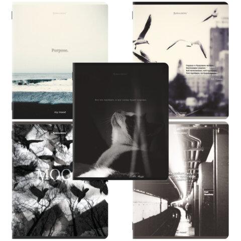 Тетради ДЭК А5 48 л. КОМПЛЕКТ 5 шт. BRAUBERG скоба, клетка, матовая ламинация, MOOD, 404955