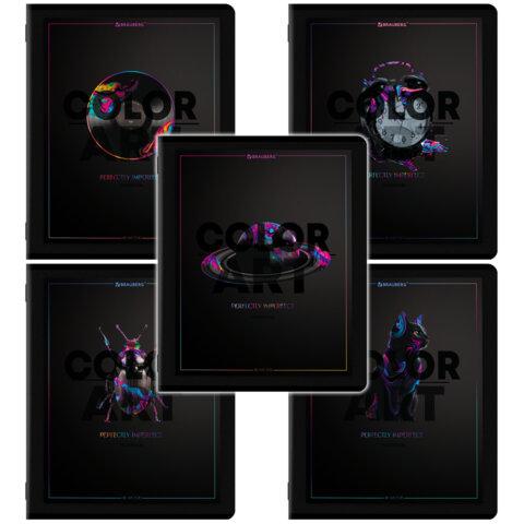 Тетради ДЭК А5 48 л. КОМПЛЕКТ 5 шт. BRAUBERG скоба, клетка, матовая ламинация, выборочный лак, MAJESTIC BLACK, 404953