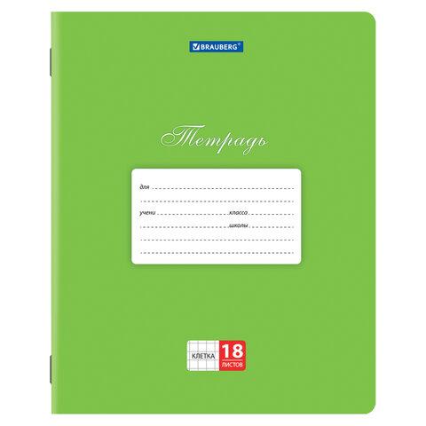 Тетради 18 л. КОМПЛЕКТ 10 шт. BRAUBERG КЛАССИКА, клетка, обложка картон, ЗЕЛЕНАЯ, 106657.