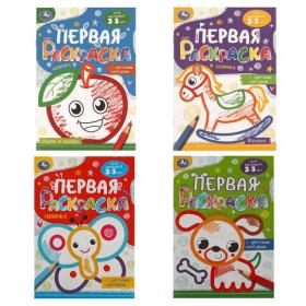 Книжка-раскраска с цветным контуром, "ПЕРВАЯ РАСКРАСКА", ассорти, 210х290 мм, 16 страниц, УМКА