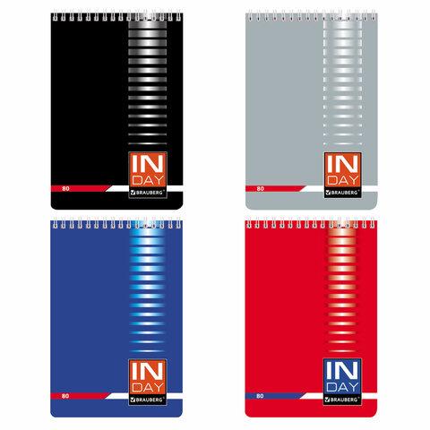 Блокнот А5 146х205 мм, 80 л., гребень, мелованная картонная обложка, клетка, BRAUBERG, "INDAY", ассорти, 121723