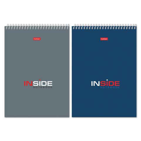 Блокнот А5 145х205 мм, 80 л., гребень, картон, жесткая подложка, клетка, HATBER, "INSIDE" ("Офисный"), 004881, 80Б5В1гр