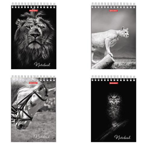 Блокнот А5 146х205 мм, 60 л., гребень, картон, жесткая подложка, клетка, BRAUBERG, "Животные", 129810