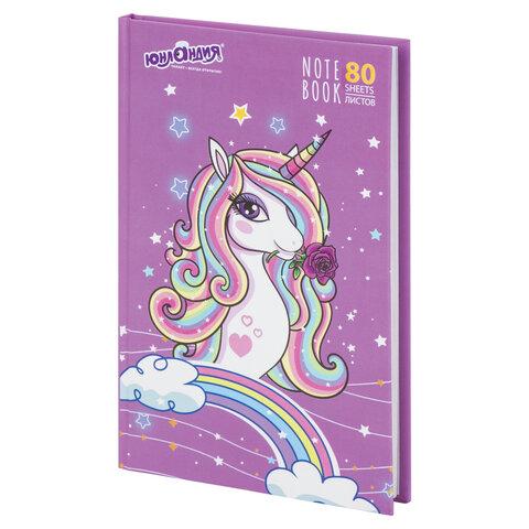 Блокнот А5 134х206 мм, 80 л., твердый, клетка, выборочный лак, ЮНЛАНДИЯ, "Единорог", 111616
