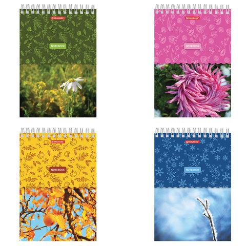 Блокнот А5 146х205 мм, 60 л., гребень, картон, жесткая подложка, клетка, BRAUBERG, "Четыре сезона", 129811