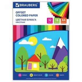 Цветная бумага А4 офсетная, 32 листа 16 цветов, на скобе, BRAUBERG, 200х280 мм, "Лесная сказка", 111328