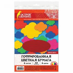 Цветная бумага А4 ГОФРИРОВАННАЯ, 8 листов 8 цветов, 160 г / м2, ОСТРОВ СОКРОВИЩ, 129293