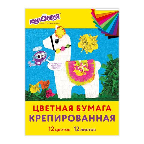 Набор крепированной бумаги, А4, 12 листов, 12 цветов, в папке с европодвесом, ЮНЛАНДИЯ, 112558