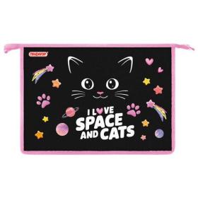 Папка для тетрадей ПИФАГОР А4, 1 отделение, картон / пластик, на молнии, "Dark kitten", 273339
