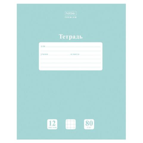 Тетрадь 12 л., HATBER Premium, клетка, обложка картон, плотная бумага 80 г / м2, "NEWtone" Зеленый нефрит, 089683, 12Т5A1_05059