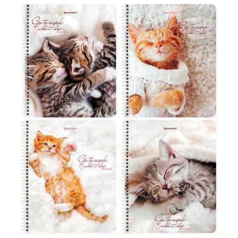 Тетрадь А5, 96 л., BRAUBERG, гребень, клетка, обложка картон, "Котики" (микс в спайке), 404425
