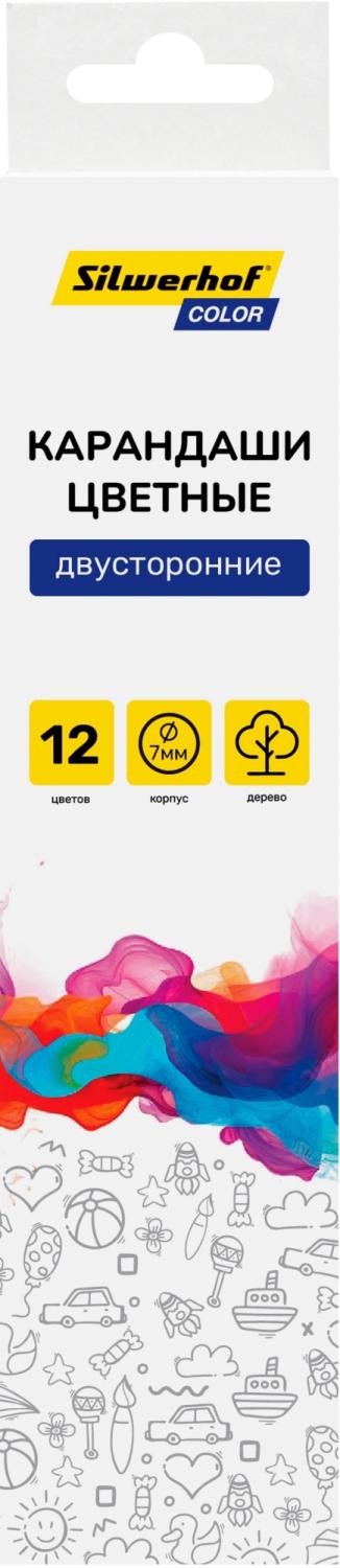 Карандаши цв. Silwerhof Color двухцвет. 2.8мм кругл. дерево ассорти 12цв. коробка / европод. (6шт)