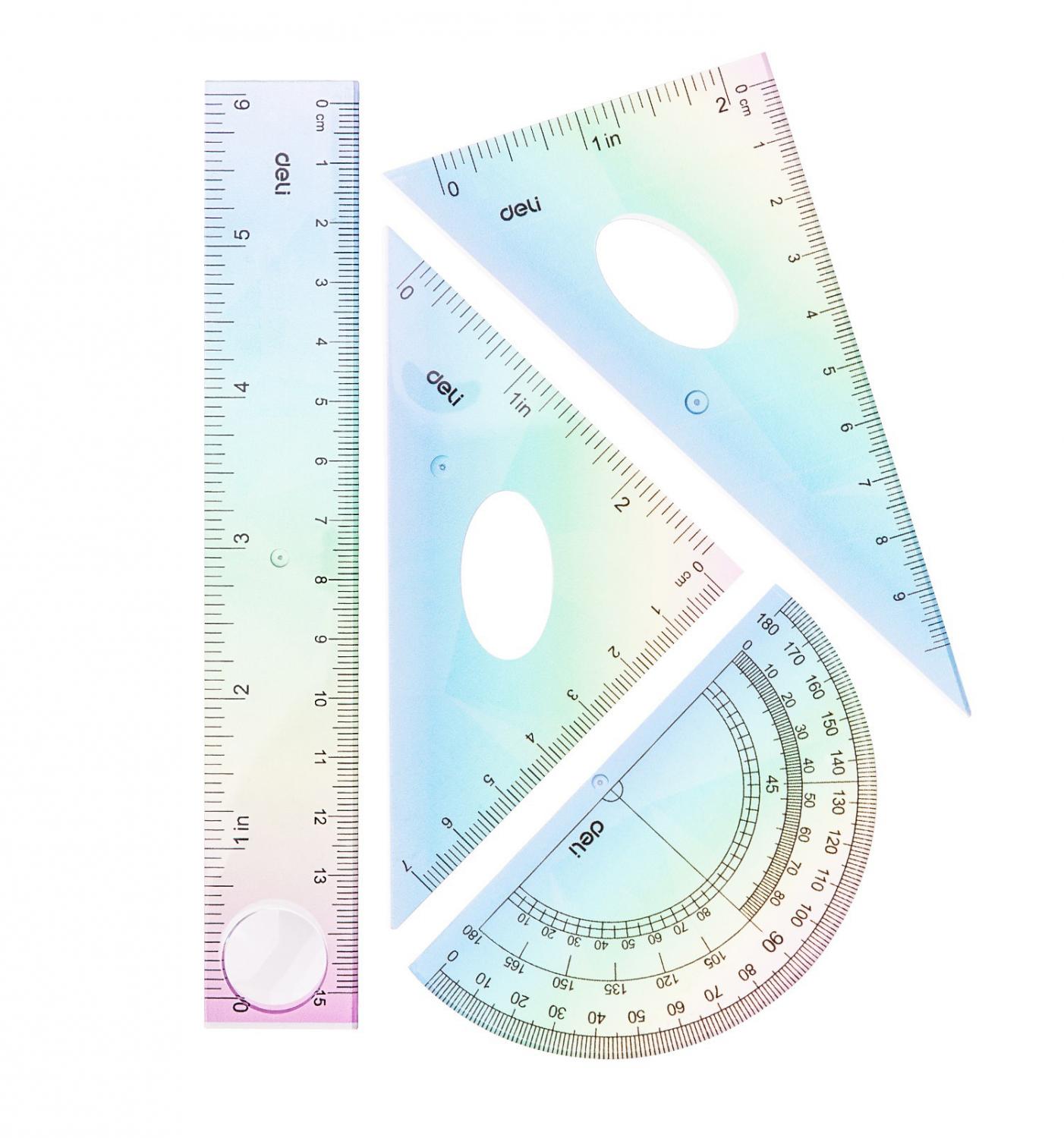 Набор линеек Deli EH652 пластик дл.15см ассорти компл.:лин 15см / 2 угольн / трансп пластиковый пакет с европодв.