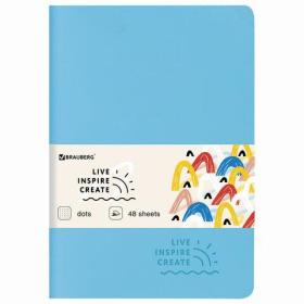 Тетрадь 48 л. в точку обложка кожзам SoftTouch, сшивка, A5 (147х210мм), ГОЛУБОЙ, BRAUBERG RAINBOW, 403883