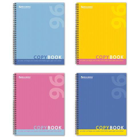 Тетрадь А5, 96 л., BRAUBERG, гребень, клетка, обложка картон, ОДИН ЦВЕТ, 401878